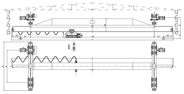 本產(chǎn)品為一般用途起重機(jī),多用于機(jī)械制造裝配、倉(cāng)庫(kù)、山洞等場(chǎng)所。起重機(jī)主要由橋架(金屬結(jié)構(gòu))、電動(dòng)葫蘆、運(yùn)行結(jié)構(gòu)、電氣設(shè)備等四部分組成。